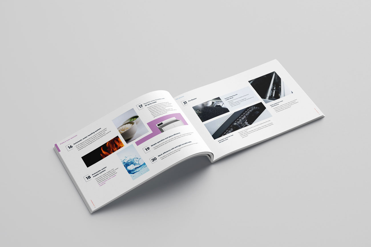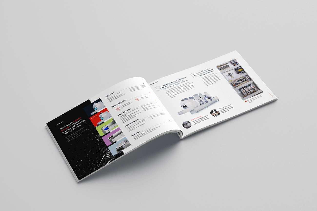 - 업소용 식기세척기 전 라인업과 부속 설비를 폭넓게 담아낸 카탈로그 구성