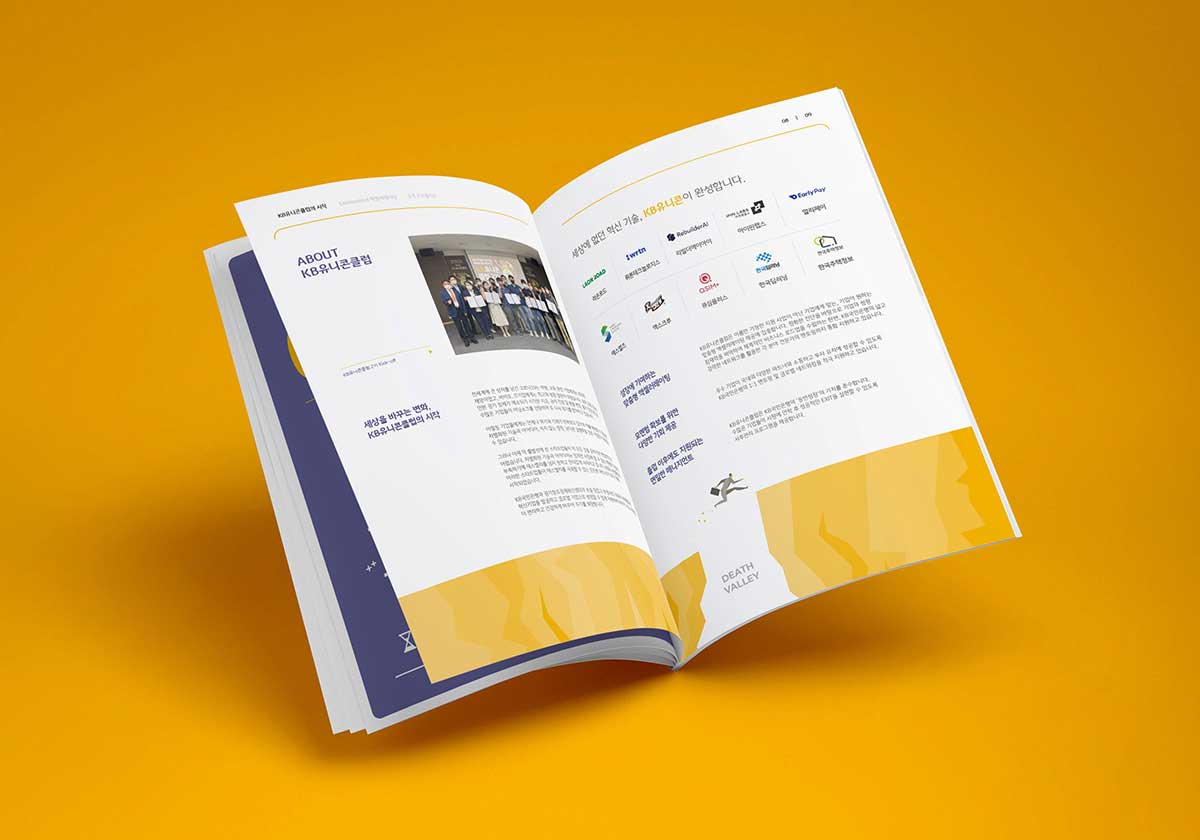 - KB 브랜드 컬러와 인포그래픽을 활용한 공신력 있는 비주얼 방향성