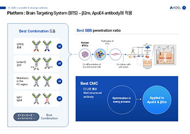 또한 단순 항체 개발에 그치지 않고 BBB 투과 기술인 BTS와 표적 단백질 분해 플랫폼 ADTAC을 확보해, 뇌질환 치료제 개발에서 가장 큰 난제로 꼽히는 뇌 전달과 응집 단백질 제거 문제를 동시에 공략하고 있습니다.