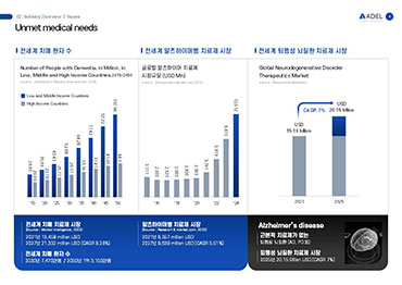 - 치매 치료제 시장 확대와 퇴행성 뇌질환 치료 시장의 미충족 수요를 연결한 투자 논리 강화