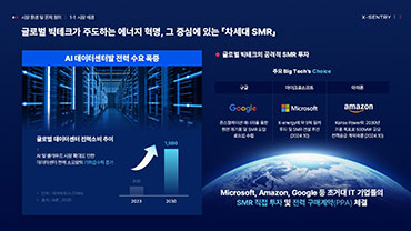 - 글로벌 빅테크의 SMR 투자 흐름과 AI 전력 수요를 연계한 시장 진입 당위성 구축