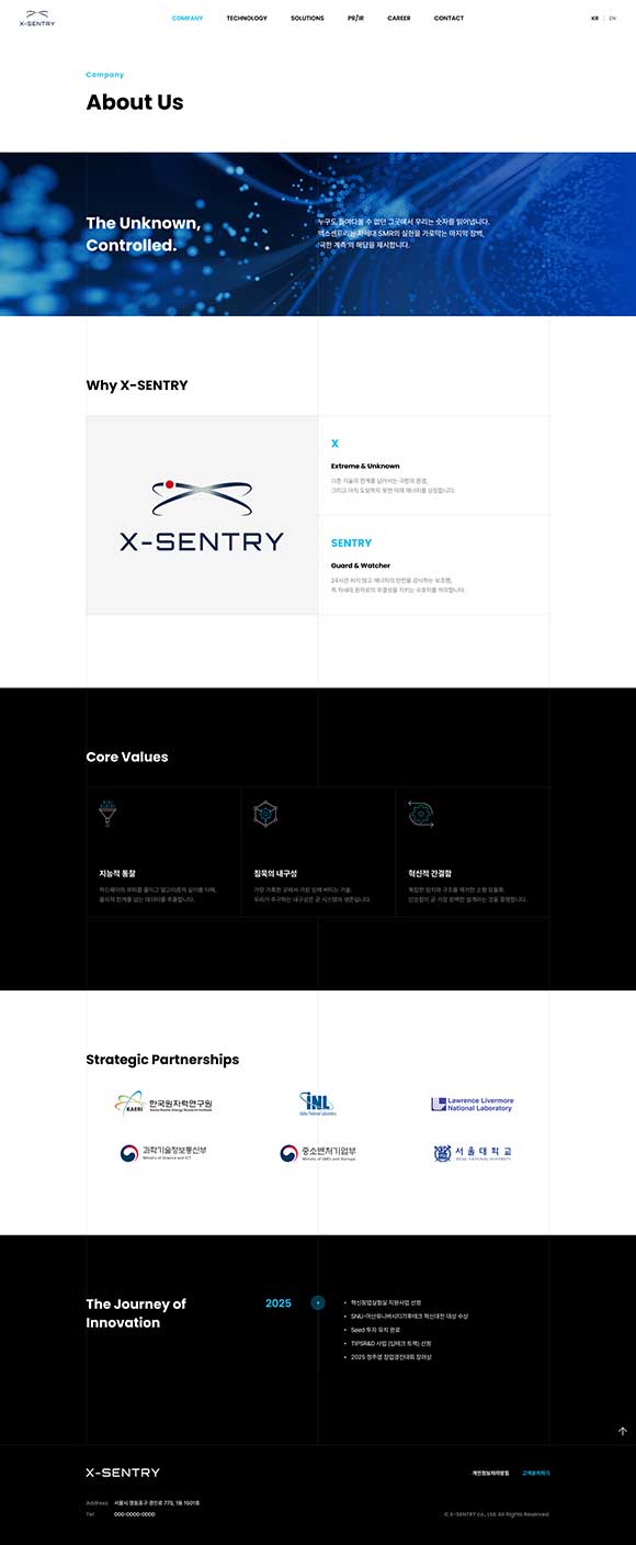 엑스센트리(X-Sentry)는 2025년 7월 설립된 서울대/KAIST 원자핵공학 연구진 기반의 딥테크 스타트업으로, 차세대 소형모듈원자로(SMR)의 고온·고압·고방사선 등 극한 환경에서 작동하는 핵심 센서 및 안전 모니터링 솔루션을 개발합니다.